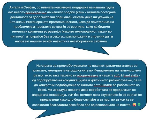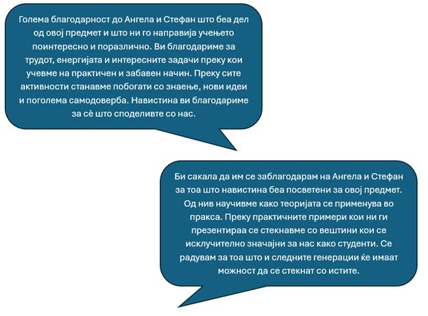 Во продолжение дел од фидбеците на нашите студенти за Ангела и Стефан и искуствата со оваа иницијатива.